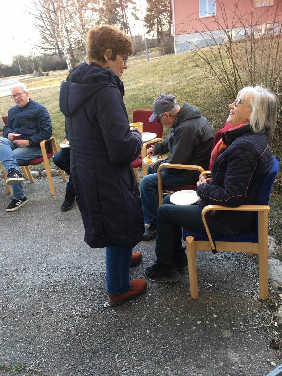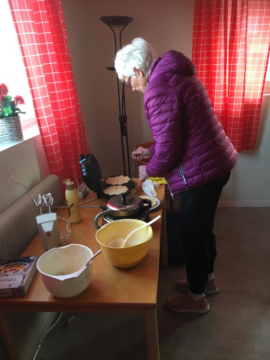 Våffeldagen firades utanför föreningslokalen. Ett flertal medlemmar kom för att låta sig smakas av nygräddade våfflor tillsammans med en klick sylt och grädde.